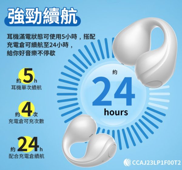 *耳機充滿電狀態可使用5小時,搭配充電倉可續航至24小時,給妳好音樂不停歇