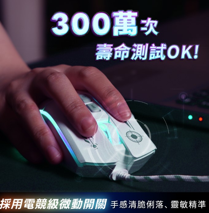 ‧ 電競級微動開關-靈敏精準,可承受高達300萬次點擊