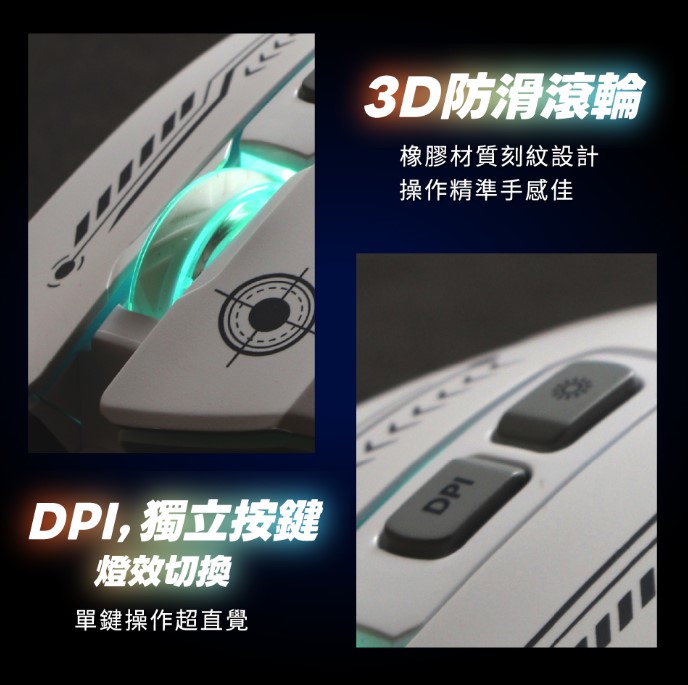 ‧ DPI、燈效切換獨立按鍵,單鍵操作超直覺