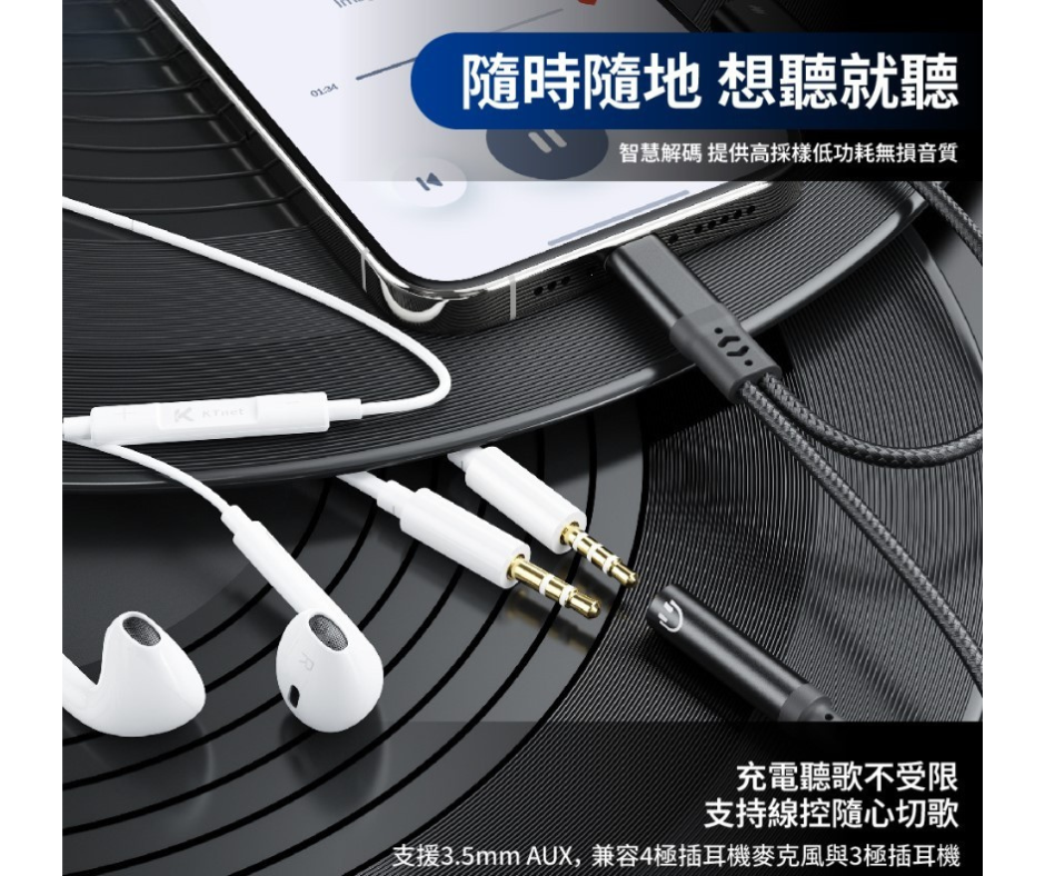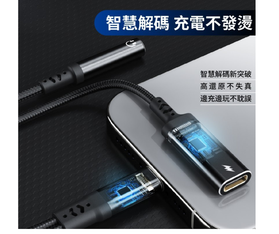 包裝內容 : TypeC轉音源+充電轉接線*1