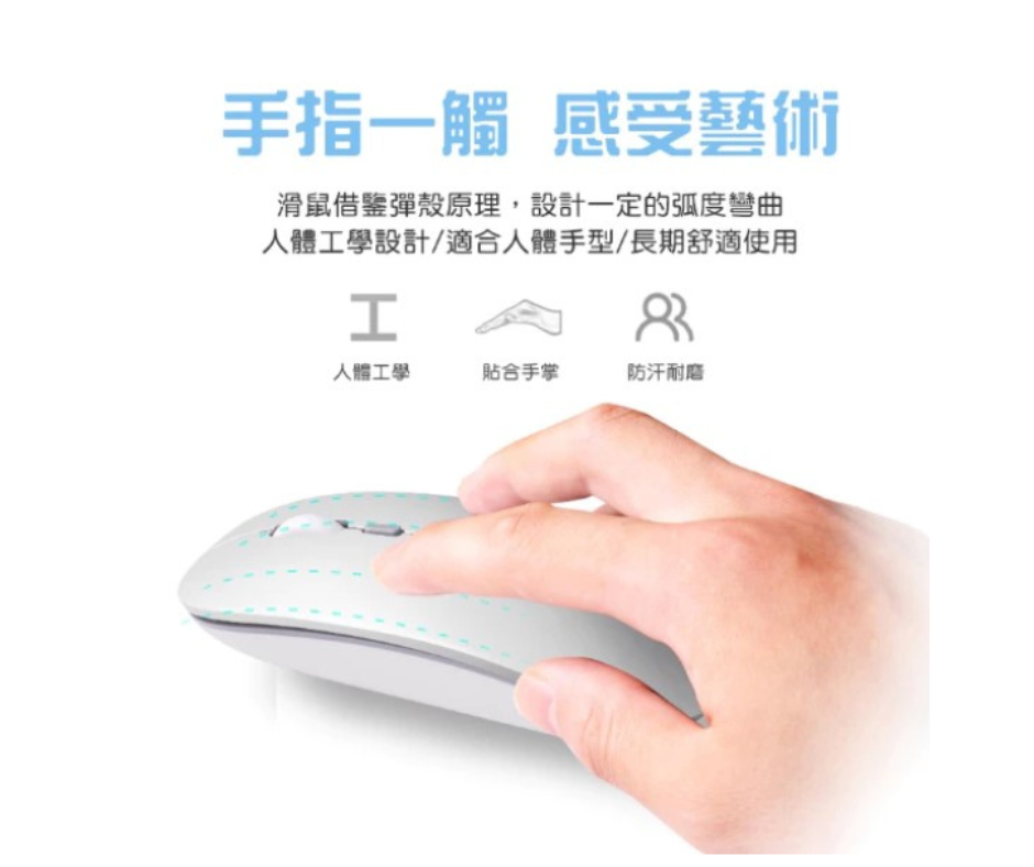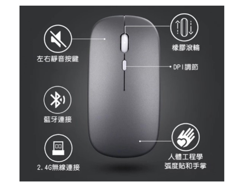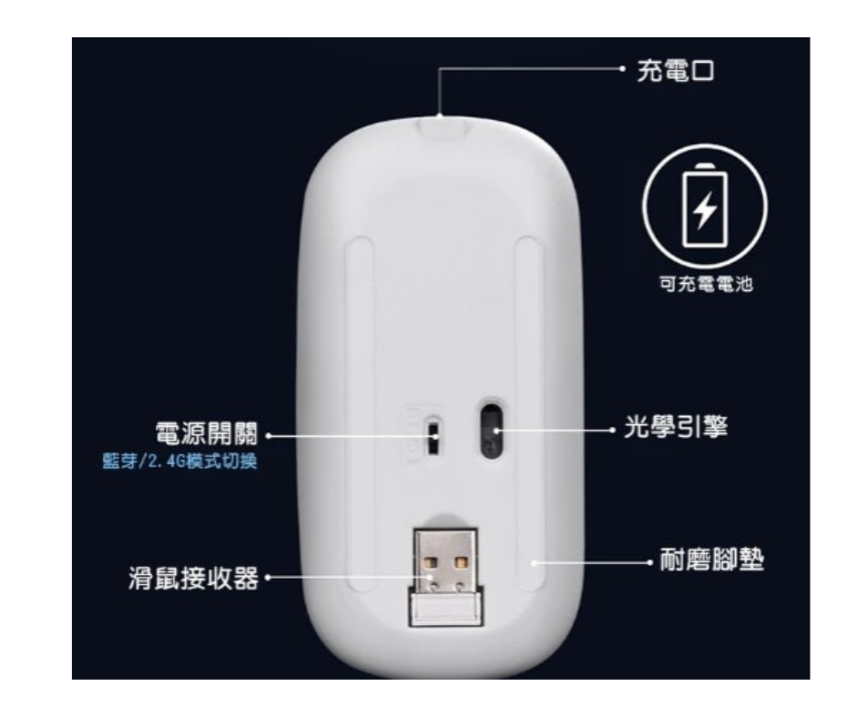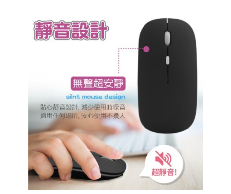 可充電式藍芽無線靜音滑鼠(內建充電電池,無須準備電池)