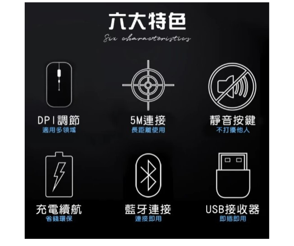 ◆產品名稱:可充電式藍芽無線滑鼠-黑色