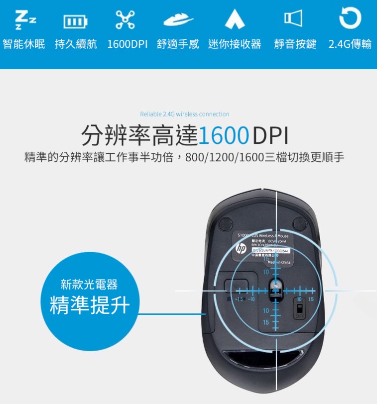 ◆產品名稱:HP S1000 PLUS無線靜音滑鼠-黑色