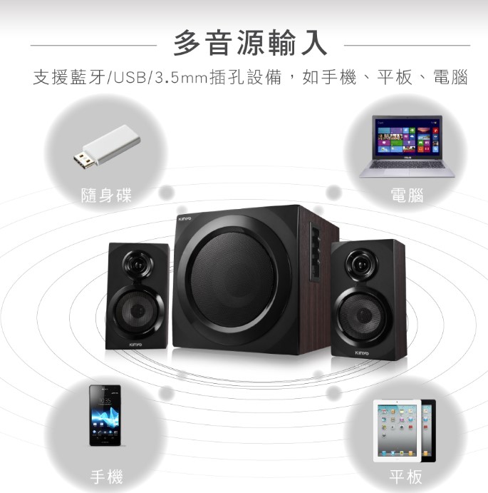 *支援3.5mm插孔設備,如手機、平板、與電腦