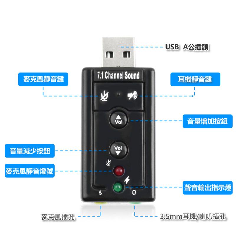 1. 7.1聲道外接式音效卡,虛擬數位7.1聲道環繞3D音效,高品質聲音享受